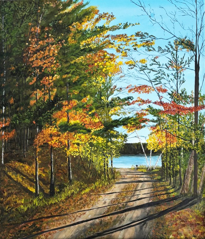 Acrylic on 12″ x 16″ on gallery stretched canvas. Tucked away in Muskoka, this bay holds a special place for me. I wanted too capture not just its stillness, but the vibrant energy that fall brings to familiar places. Nature shifts, yet somehow stays the same – steady, beautiful, alive.