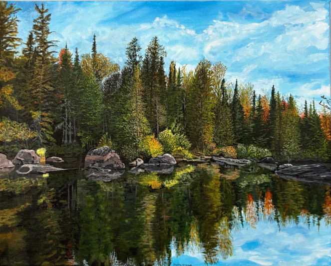 I grew up in a small town in Ontario. My mom was the head of the local Arts Council and, together with my dad, loved to discover local artists. I learned to appreciate many forms of art as they would speak intently about each piece found - its genesis, makeup and merit. My sister and I continued this tradition over decades, spending our holidays visiting shows, galleries and art tours. I never suspected that I would move from art lover to artist until I retired in Stratford, Ontario - and Covid 19 hit. I found peace during these trying times by spending hours honing my craft with online tutors - focusing on how best to actualize realism in water, woods and sky, eventually animals, as an acrylic paint artist.