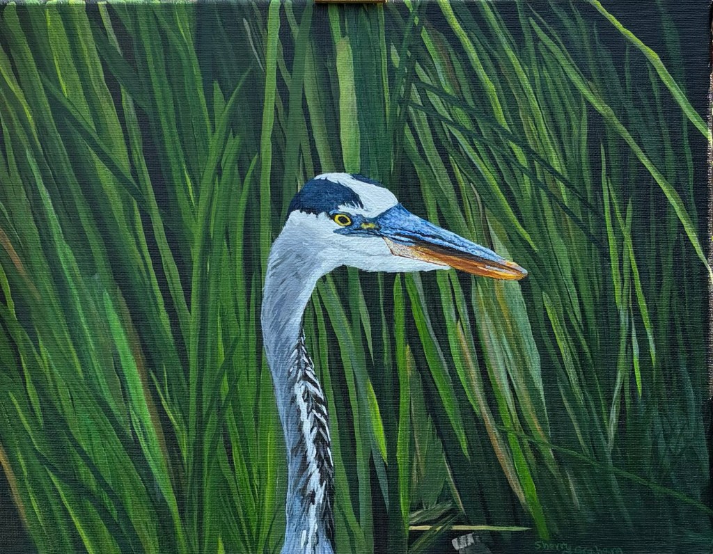 ‘Heron 2’ – Acrylic on stretched canvas. 11”x14” – photo reference courtesy of Chris Arthurs, Love Thy Nature Photography.