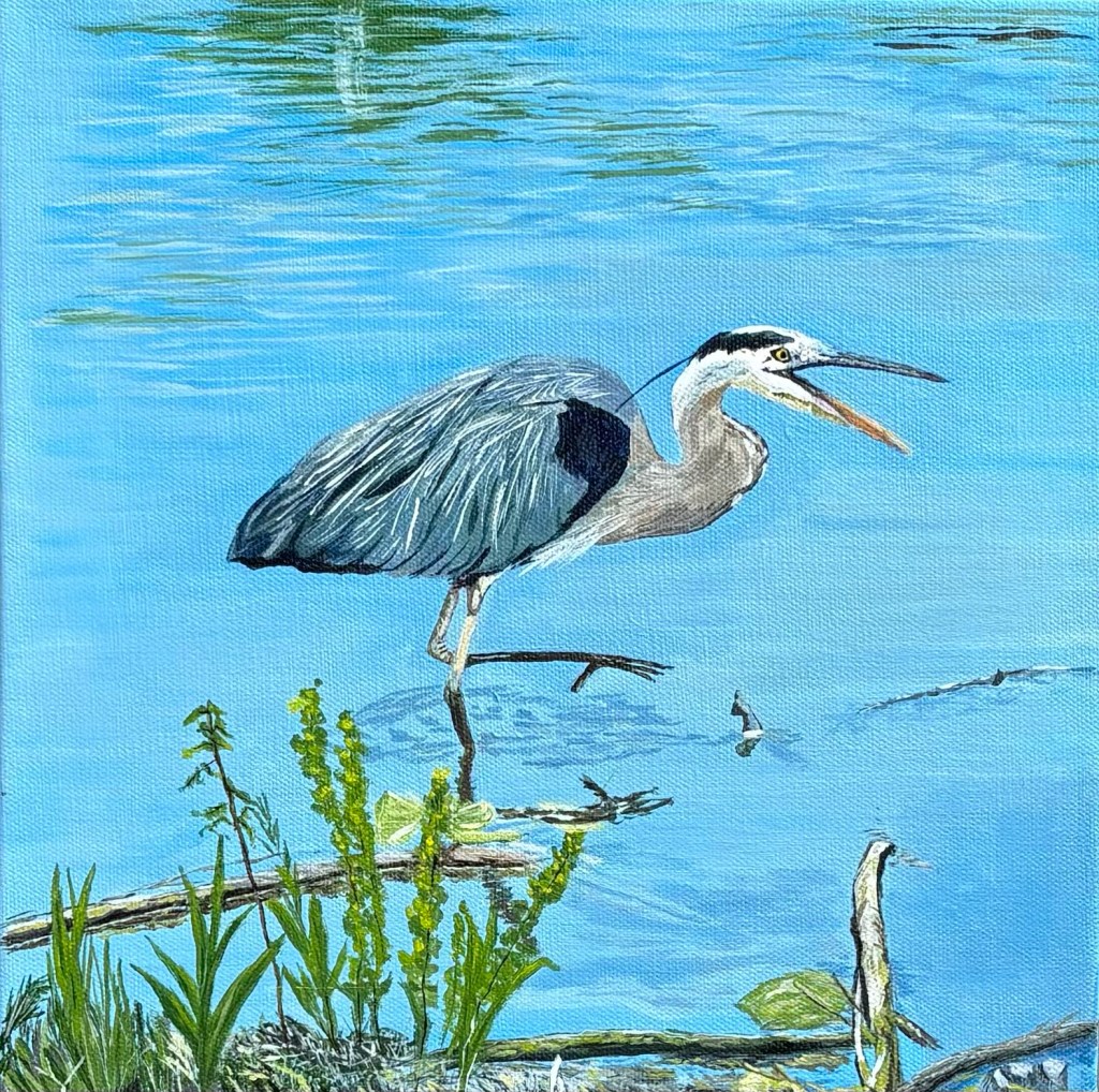 Acrylic- Heron 3 photo reference credit to Deb Gropp McLeod – 12”x12” acrylic