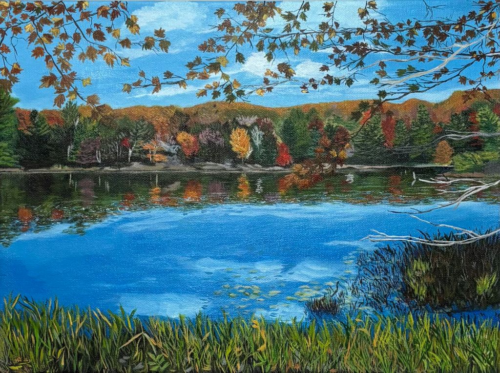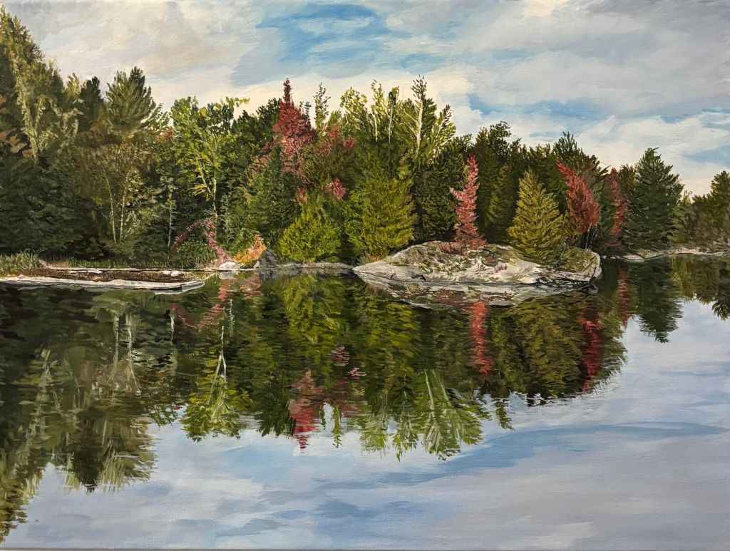 Acrylic on 12″ x 16″ on gallery stretched canvas. Tucked away in Muskoka, this bay holds a special place for me. I wanted too capture not just its stillness, but the vibrant energy that fall brings to familiar places. Nature shifts, yet somehow stays the same – steady, beautiful, alive.