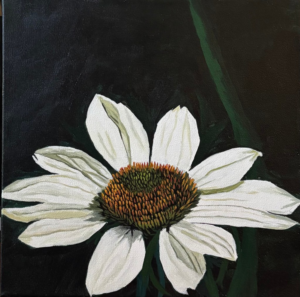 This piece was inspired by a photo from local photographer Will Bailey and I wanted to honour the quiet, subtle leaf work that framed the flower. It is about noticing the small details that often go unseen, a moment of calm in everyday.
